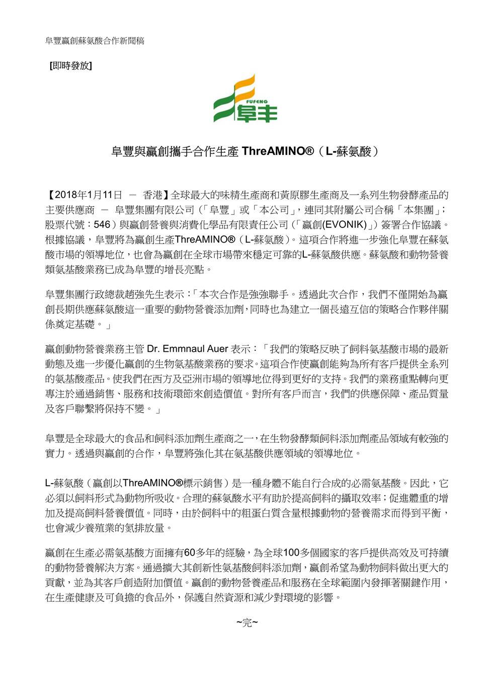 米乐官方网页版-米乐(中国)与赢创携手合作生产ThreAMINO®(L-苏氨酸)